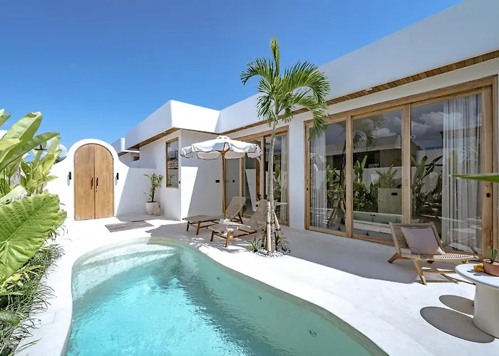 The villa is located in the Babakan district, around 15 minutes by car from Nelayan Beach.